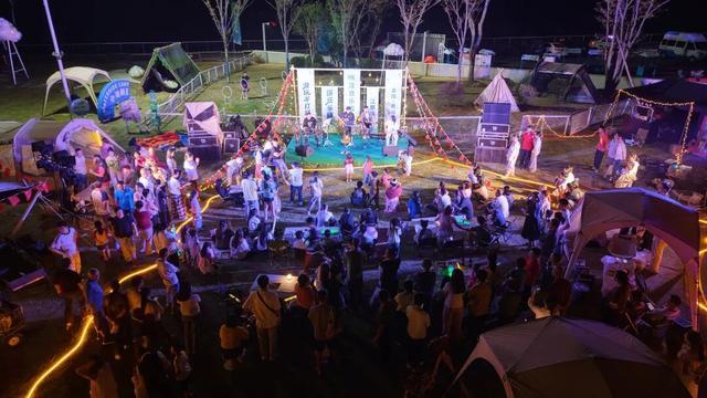 在微笑绿洲的“潮玩不打烊国庆乐翻天”帐篷音乐嘉年华同样人气高涨,与君山健康跑活动联动,从9月30日持续至10月7日,民谣演唱、猜歌名互动、本土乐队演出轮番登场,《后来》《晴天》等经典曲目引发全场大合唱;夜间的江豚保护主题灯光秀与篝火晚会,让游客沉浸式感受“江湖”浪漫。10月3日,“湘超热血·球赛狂欢”主题活动接棒,球迷们在观看大屏幕直播的同时,一起烧烤夜宵唱歌,打造“音乐+体育+美食”的多维体验,使得营地周边商户假期每天营业额都能破万元。