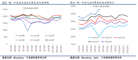目前来看,印度作为后发国家确实存在明显的需求增长潜力,但面对特朗普关税政策等不确定性因素,印度在汽油消费提振的同时,能否在石脑油以及下游化工需求等方面有同样的亮眼表现存在一定疑问。